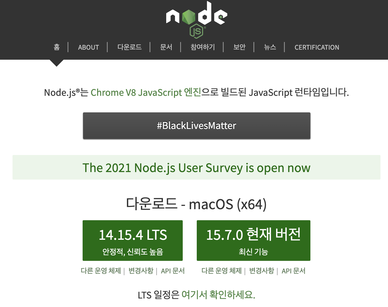 nodejs.org/ko/<- 클릭하시면 Node.js홈페이지로 이동합니다.